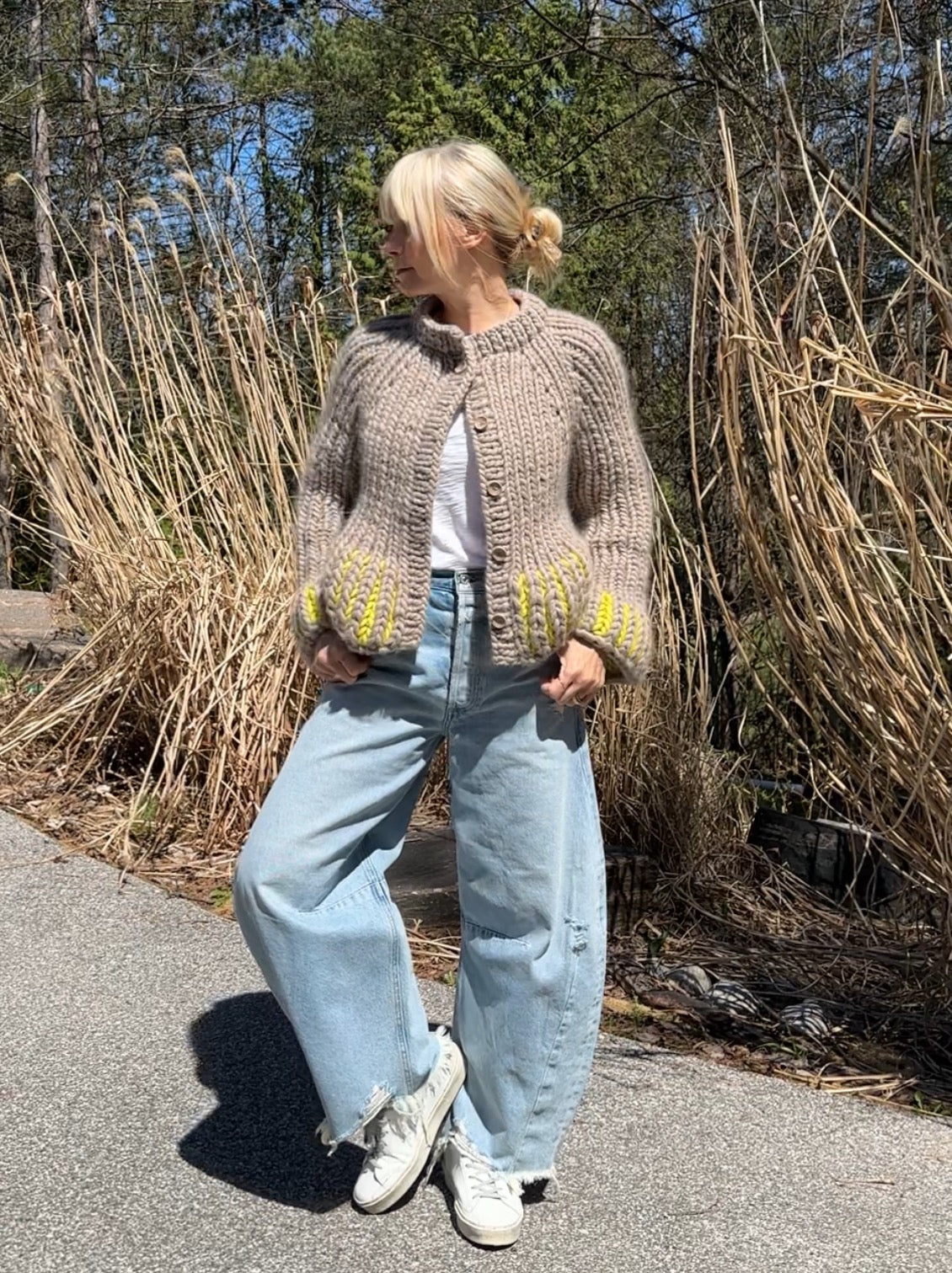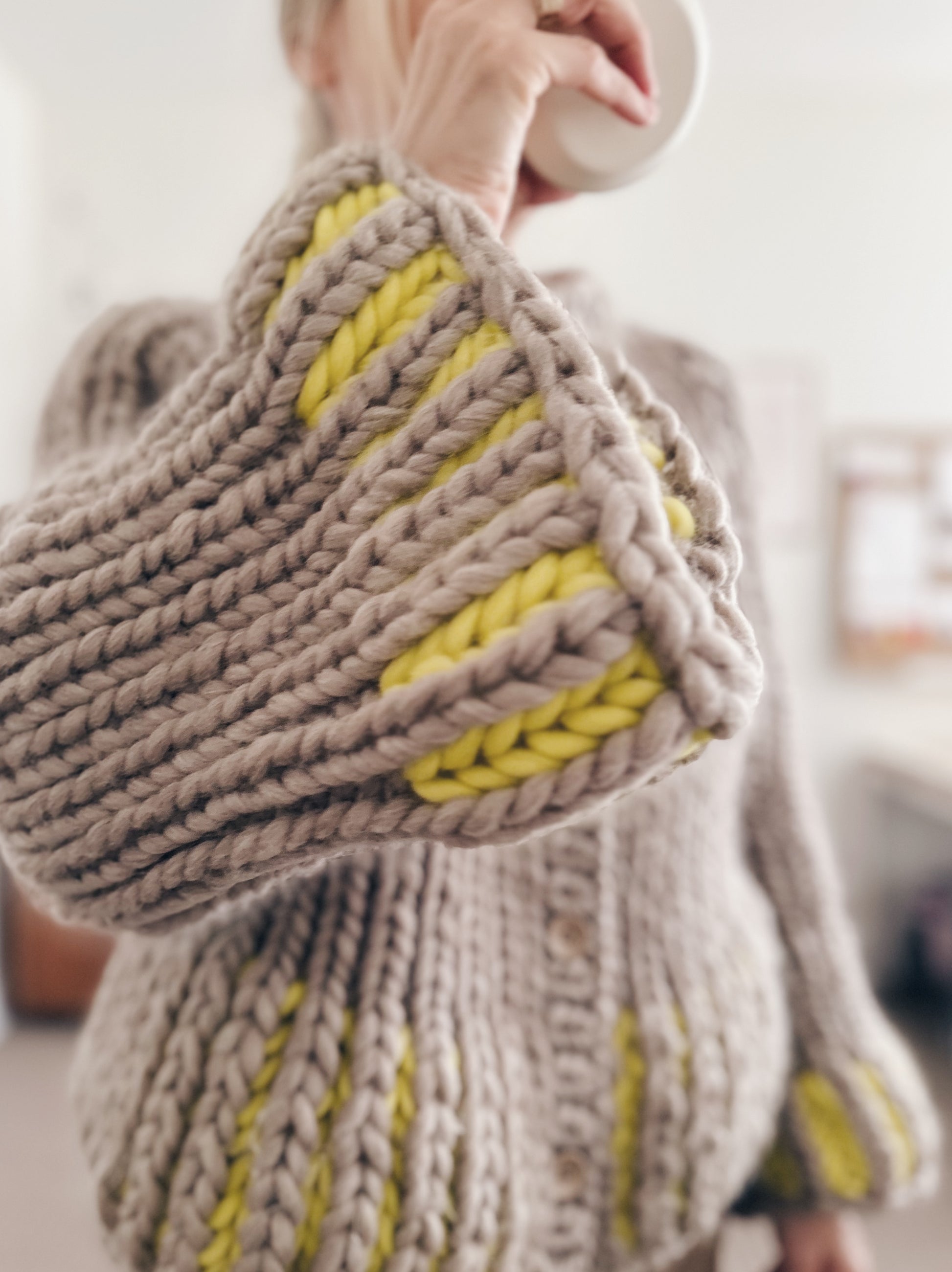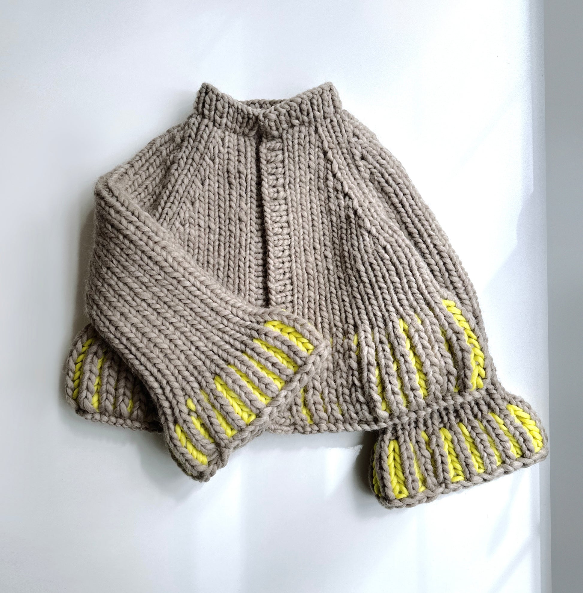 Once you have placed your order, I will prepare the materials and hand knit your jacket. Please keep in mind that this process has a 4 week time frame to complete.