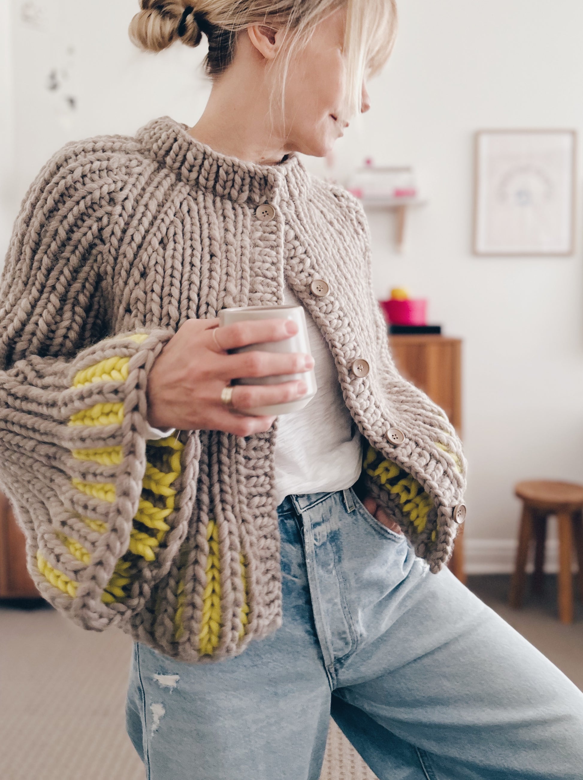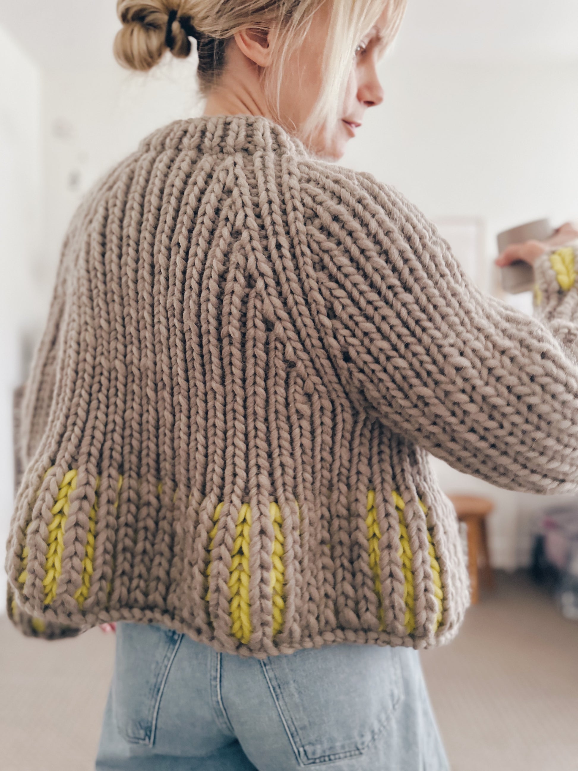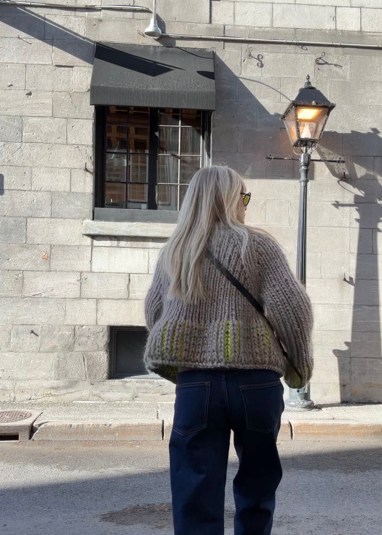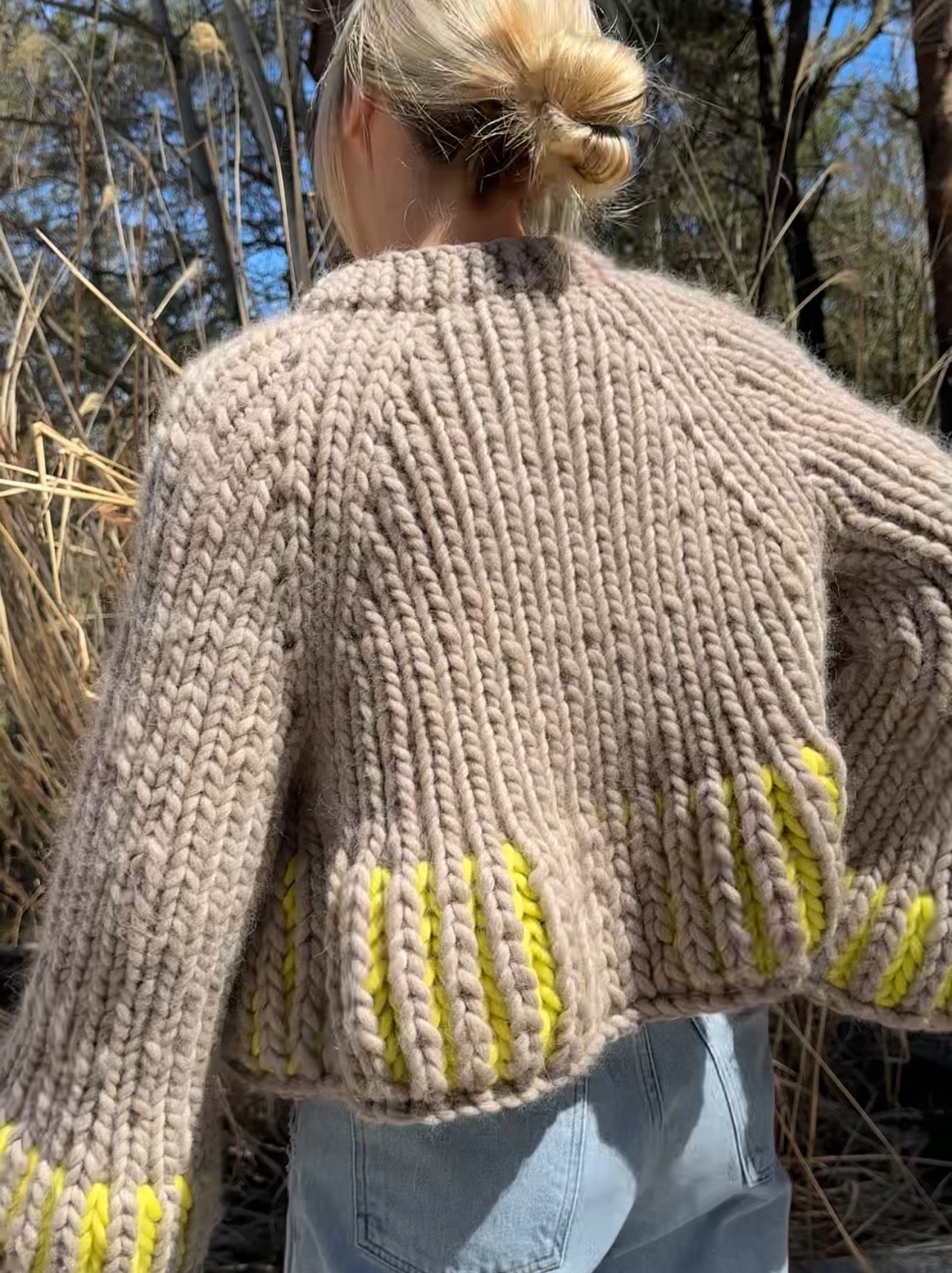 Once you have placed your order, I will prepare the materials and hand knit your jacket. Please keep in mind that this process has a 4 week time frame to complete.